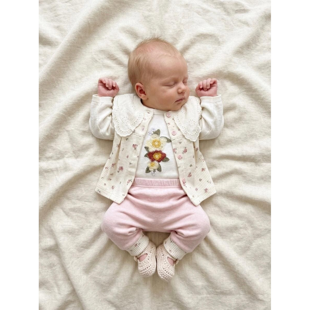 %100 Pamuk Kız Bebek 3’lü Takım (Hırka + Body + Pantolon)