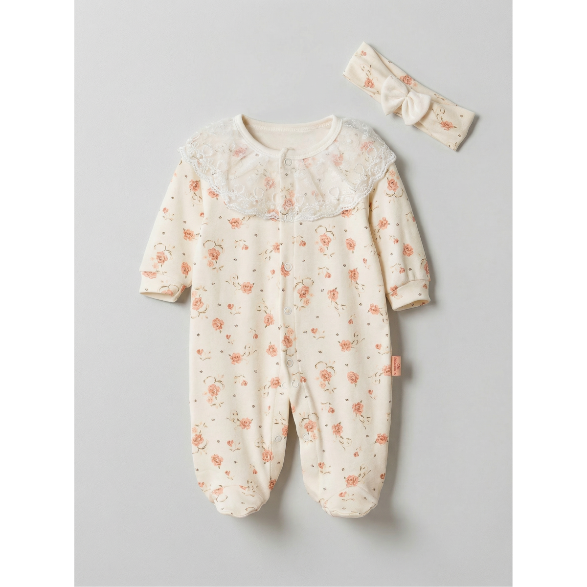 Pamuş 0-3-6 Ay Gül Rüyası Penye Kız Bebek Tulum Somon