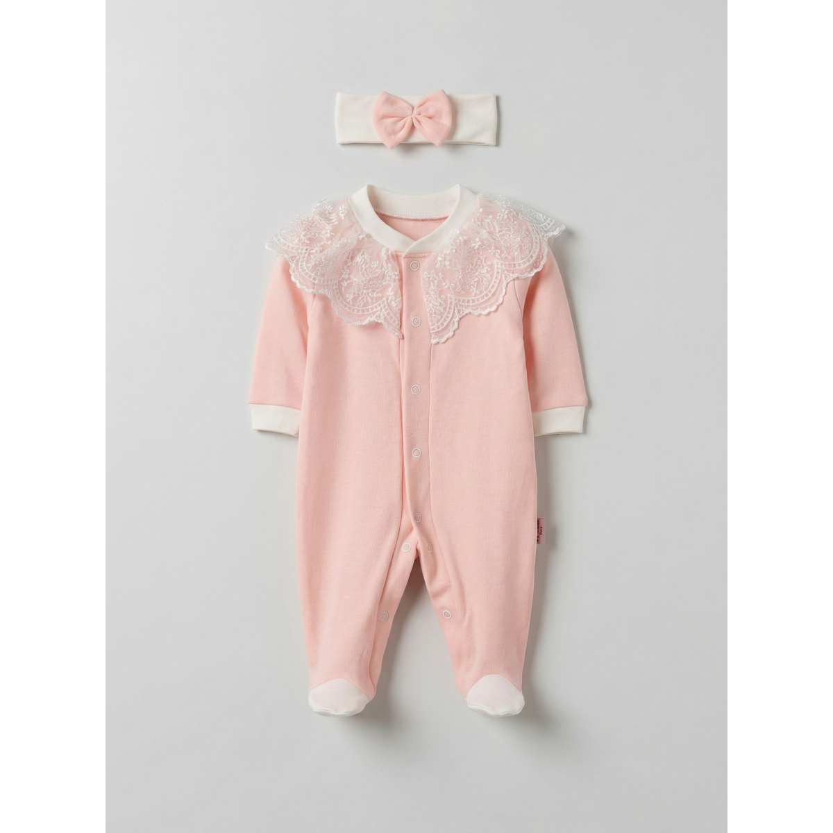 Pamuş 0-3-6 Ay Masal Gibi Penye Kız Bebek Tulum Somon