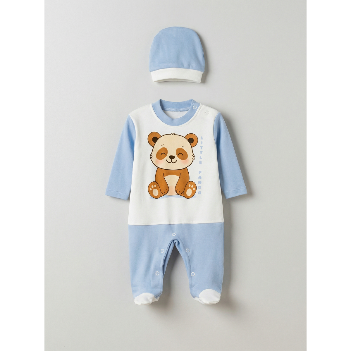 Pamuş 0-3-6 Ay Panda Penye Erkek Bebek Tulum Mavi