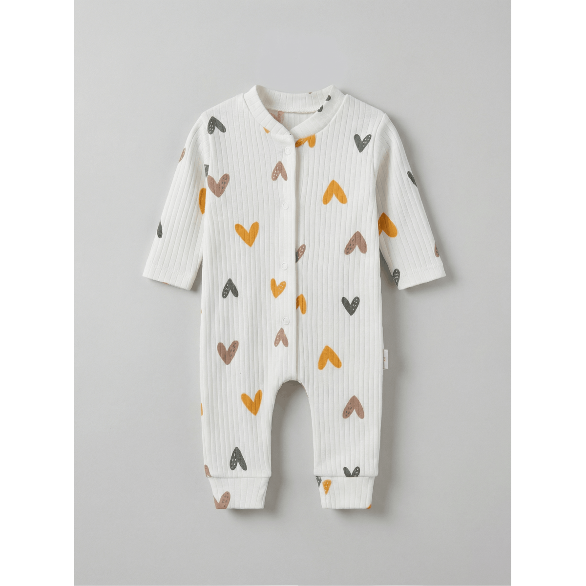ZıbZıb 0-3-6 Ay Kalpli Penye Tulum Ekru - Sarı