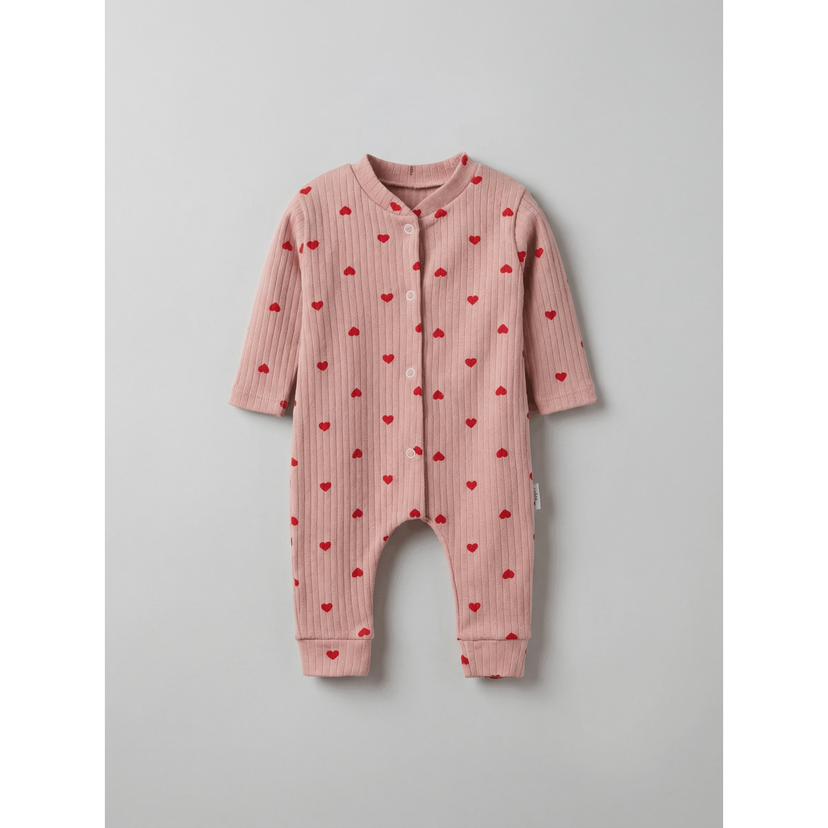 ZıbZıb 0-3-6 Ay Kırmızı Kalpli Penye Tulum Mürdüm
